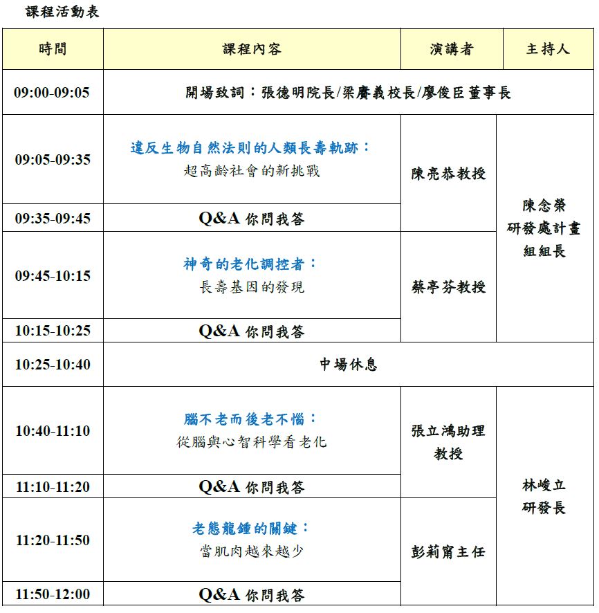 - 目標:提高青少年對高齡醫學之知識與興趣,培養國家未來的生醫科技人才。