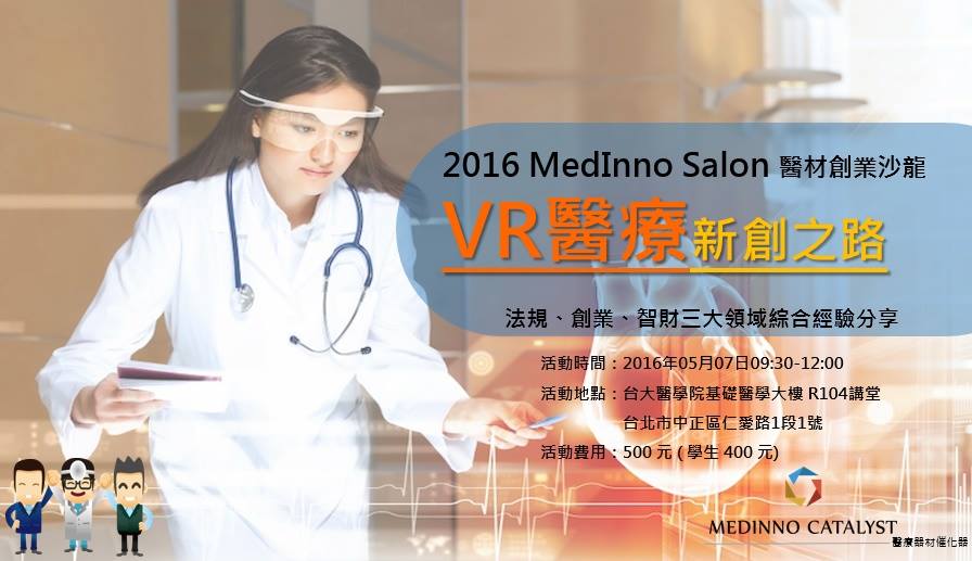 VR醫療新創之路於 5/7(六) 早上9:30 於台大醫學院104講堂舉辦