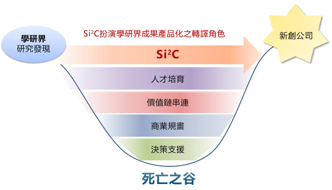 成立於 2011 年 11 月,以 Branding Taiwan Biotech為目標,Si2C 結合各領域專家,篩選出具潛力且具新創公司意願之案源,並進行輔導育成,以成立新創公司及商品化,其中亞洲流行病學特色者為優先盤點項目,目前已完成肺癌 (Lung Cancer)、肝癌 (Liver Cancer)、肺結核 (TB) 等項目之盤點。Si2C 藉由經濟部科專計劃以及科技部育苗專案等經費補助成立種子基金,支持前期學術界研發計畫或新創公司與後期的投資接軌,並且建立培育未來具創業精神的跨領域高階人才培訓課程與機制。Si2C網址:http://www.siic.com.tw/